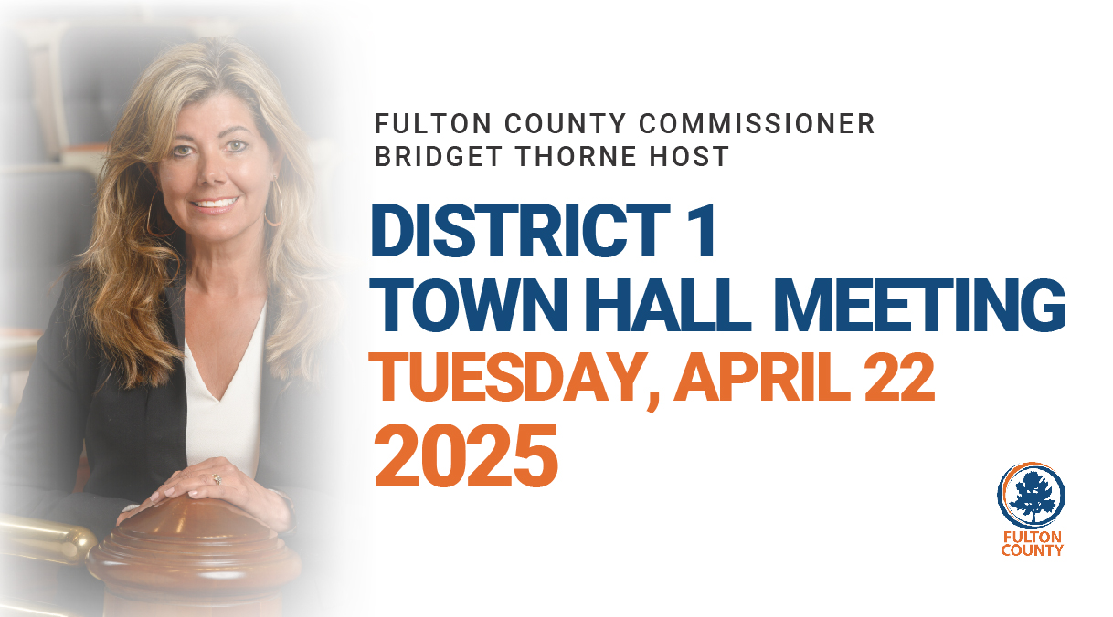 Fulton County District 1 Commissioner Bridget Thorne will hold a Town Hall meeting to provide updates for the residents in North Fulton County. The scheduled Town Hall will be held on Tuesday, April 22, at 6:30 p.m. at the Fulton County Customer Service Center, 11575 Maxwell Road, Alpharetta, GA 30009.