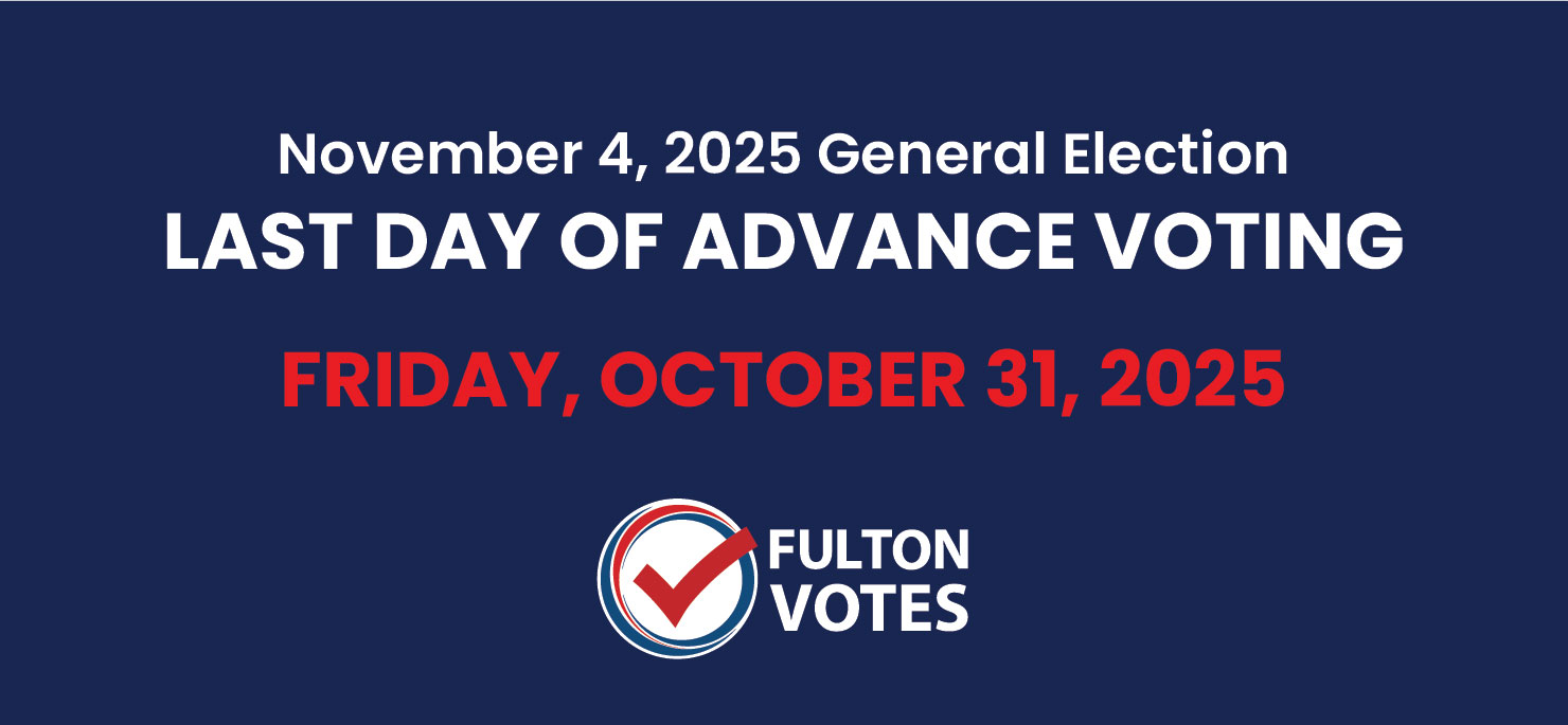 Early voting for the November 4 Election ends at 6 p.m. on Friday, October 31, 2025. Voters who choose to participate in advance voting have the option to visit one of the 24 polling sites around Fulton County. Those deciding to wait until Tuesday, November 4, to cast their ballots may only do so at their assigned polling location.