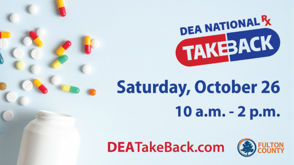 On October 26, National Drug Takeback Day, Fulton County is encouraging residents to safely dispose of used or expired medication at one of our secure drop box locations. To locate your nearest drop box location, visit https://fultoncountyga.gov/inside-fulton-county/fulton-county-initiatives/end-opioid-abuse/drug-disposal-locations.
